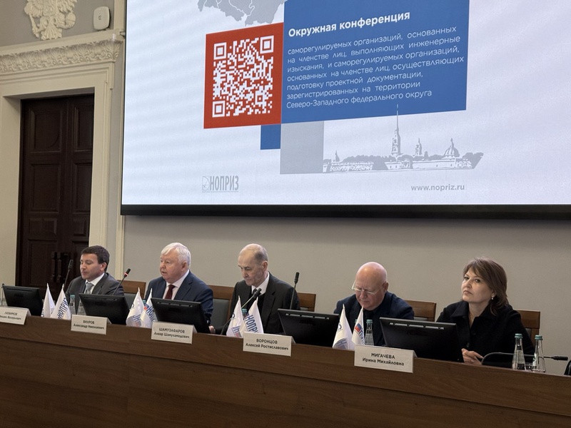 18 марта 2026 года в Санкт-Петербурге под председательством Координатора НОПРИЗ по СЗФО, президента Ассоциаций СРО «БОП», СРО «БОИ» Александра Вихрова состоялась окружная конференция саморегулируемых организаций, основанных на членстве лиц, выполняющих инженерные изыскания, и саморегулируемых организаций, основанных на членстве лиц, осуществляющих подготовку проектной документации, зарегистрированных на территории Северо-Западного федерального округа.